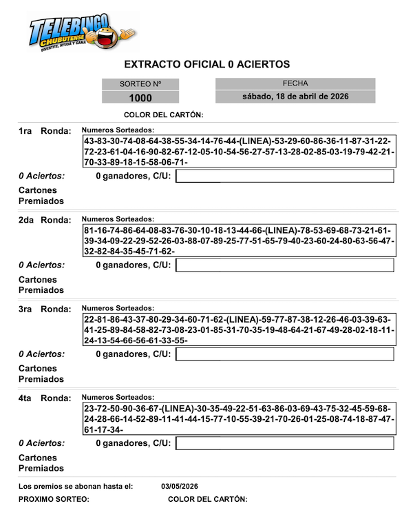 Resultados Telebingo Chubutense