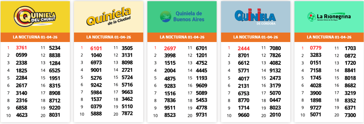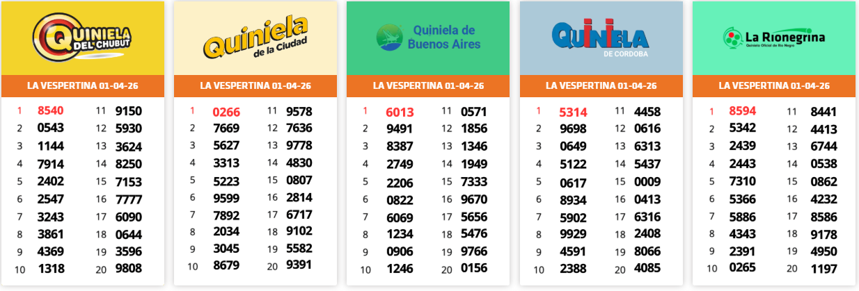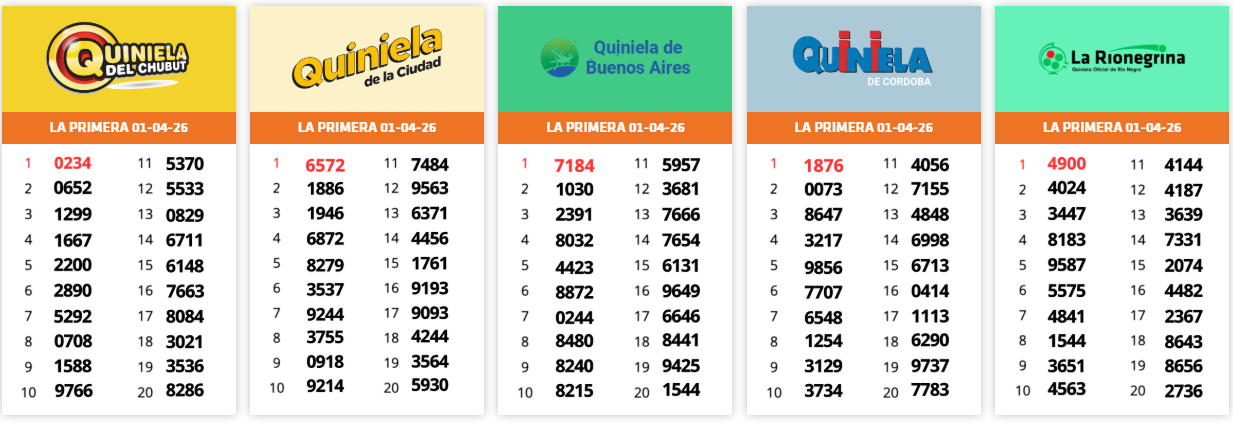 Resultados Sorteos del día 01-04-2026