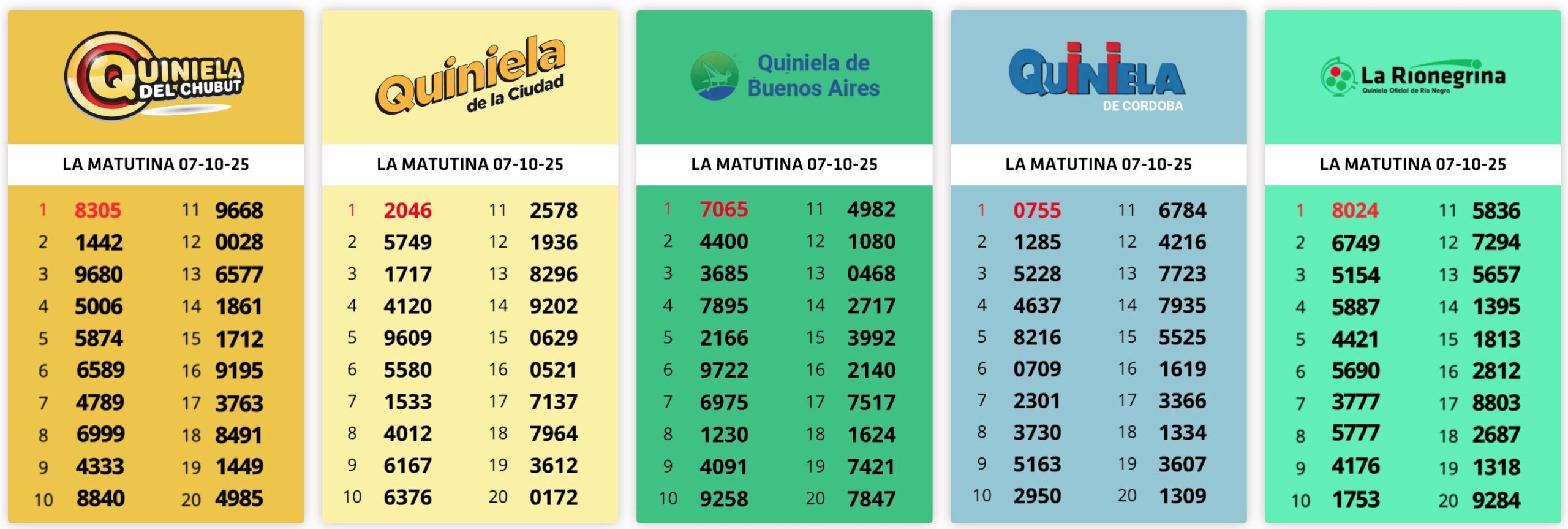 Resultados Sorteos del día 07-10-2025
