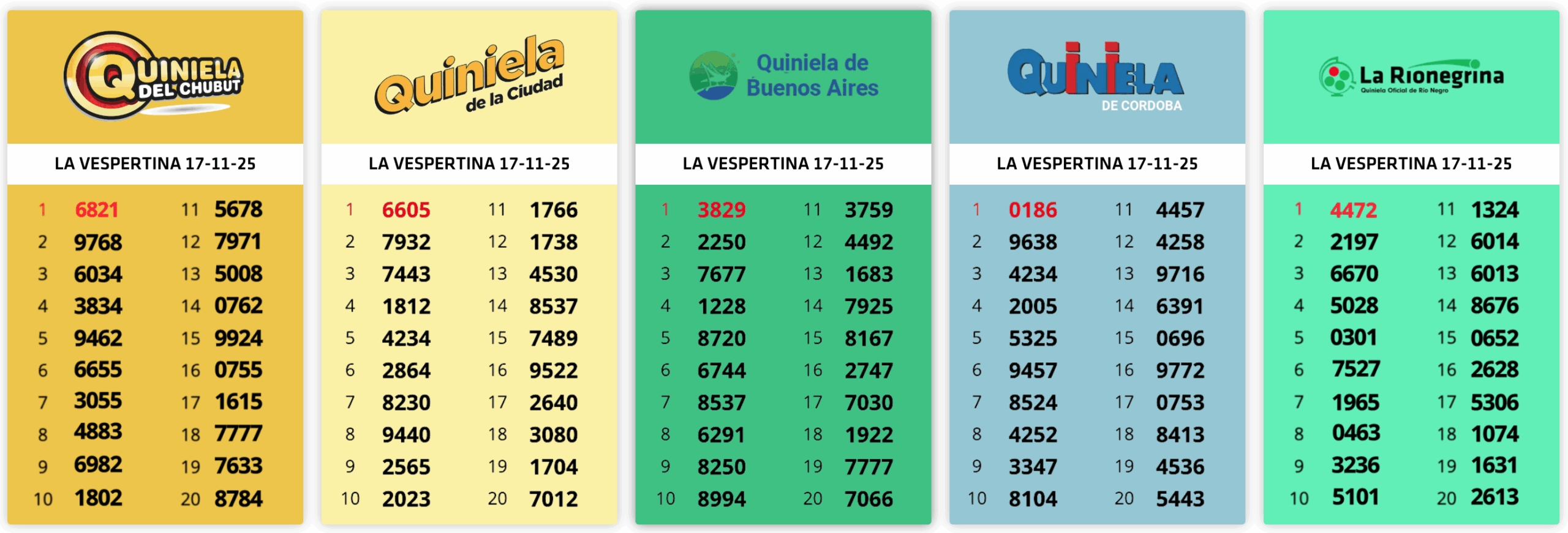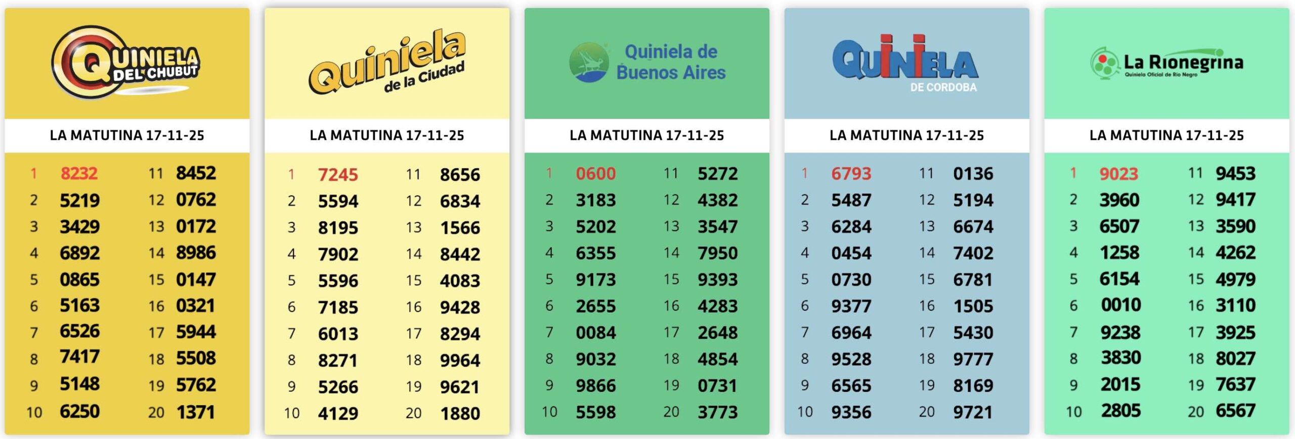 Resultados Sorteos del día 17-11-2025