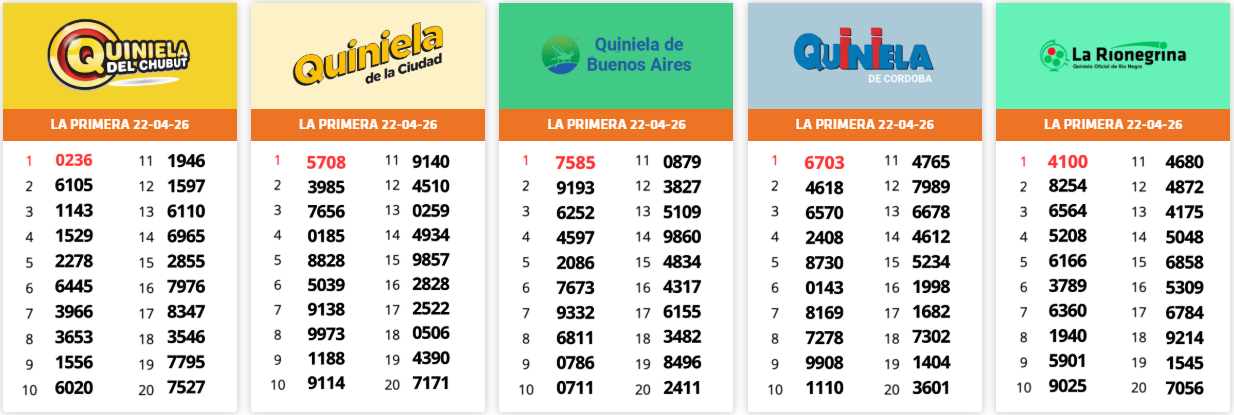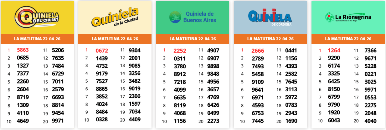 Resultados Sorteos del día 22-04-2026