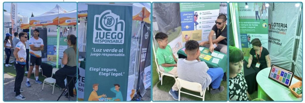 Desde el mediodía hasta la noche, el stand de Juego Responsable de Lotería del Chubut funcionó en la Pista Municipal de Trelew, brindando información de entretenimiento segura a través de un espacio lúdico y preventivo. Los más chicos participaron de mémotests físicos y online con mensajes destinados a la concientización sobre el juego responsable.