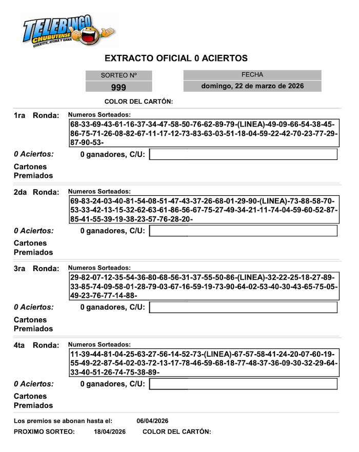 TELEKINO - Todos los domingos Valor del carton: $ 2500