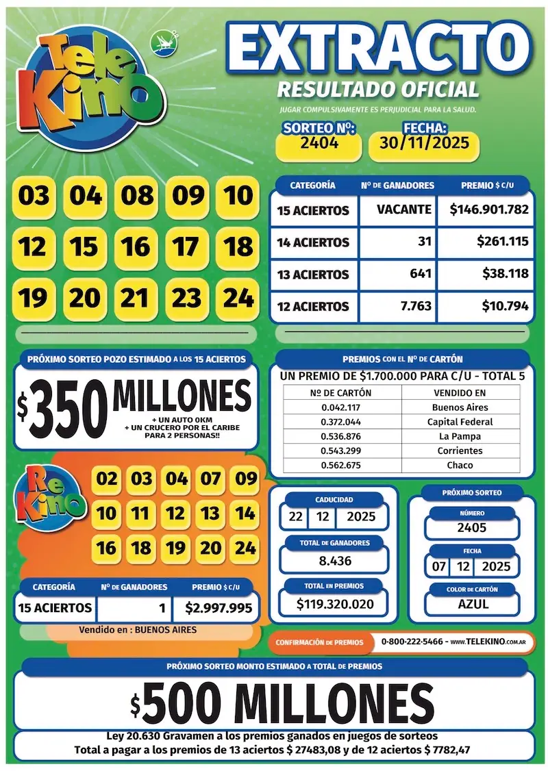 TELEKINO - Todos los domingos Valor del carton: $ 2000